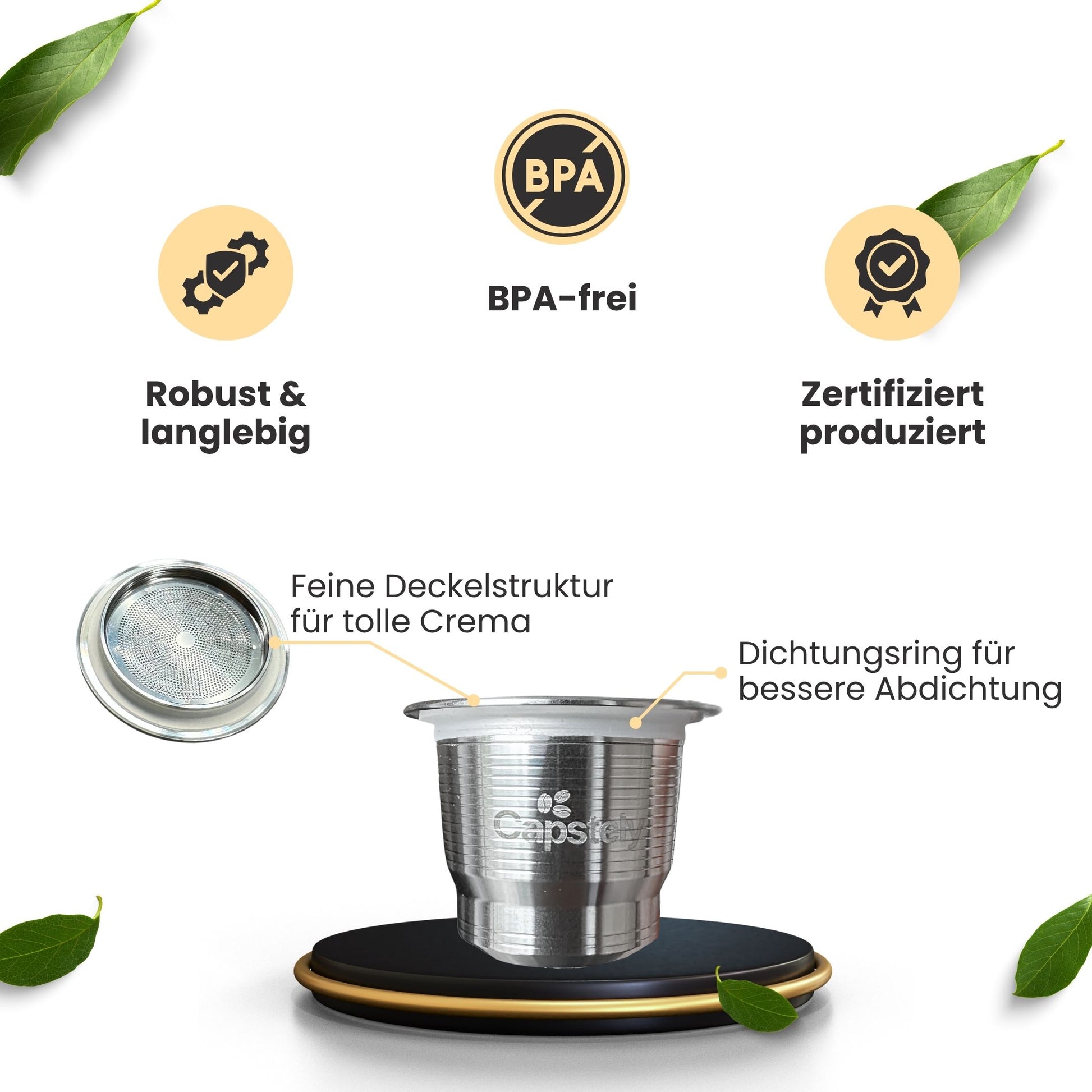 Mit jeder Edelstahl-Kapsel sparst du hunderte Einwegkapseln und machst aus deinem täglichen Kaffeegenuss einen nachhaltigen Beitrag.